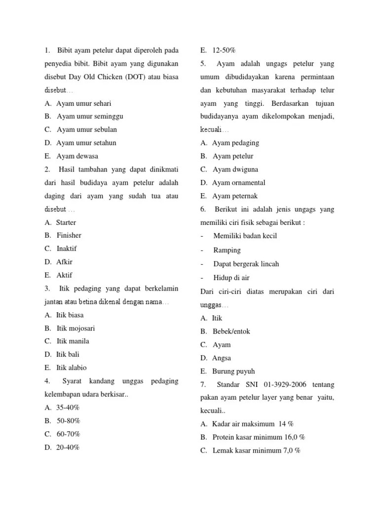Semoga apa yang admin bagikan kali ini dapat membantu bapak, ibu guru, dan peserta didik dalam mencari referensi tentang contoh soal materi prakarya budidaya ternak. soal kelas 4 tema 3 subtema 3 dan kunci jawaban. Buah yang hanya ada di waktu musim tertentu, terkadang buahnya banyak dan pada saat lain tidak berbuah sama sekali, contoh buah. Harimau dan singa berada dalam spesies yang sama. 40 soal dan jawaban tentang ternak unggas petelur.